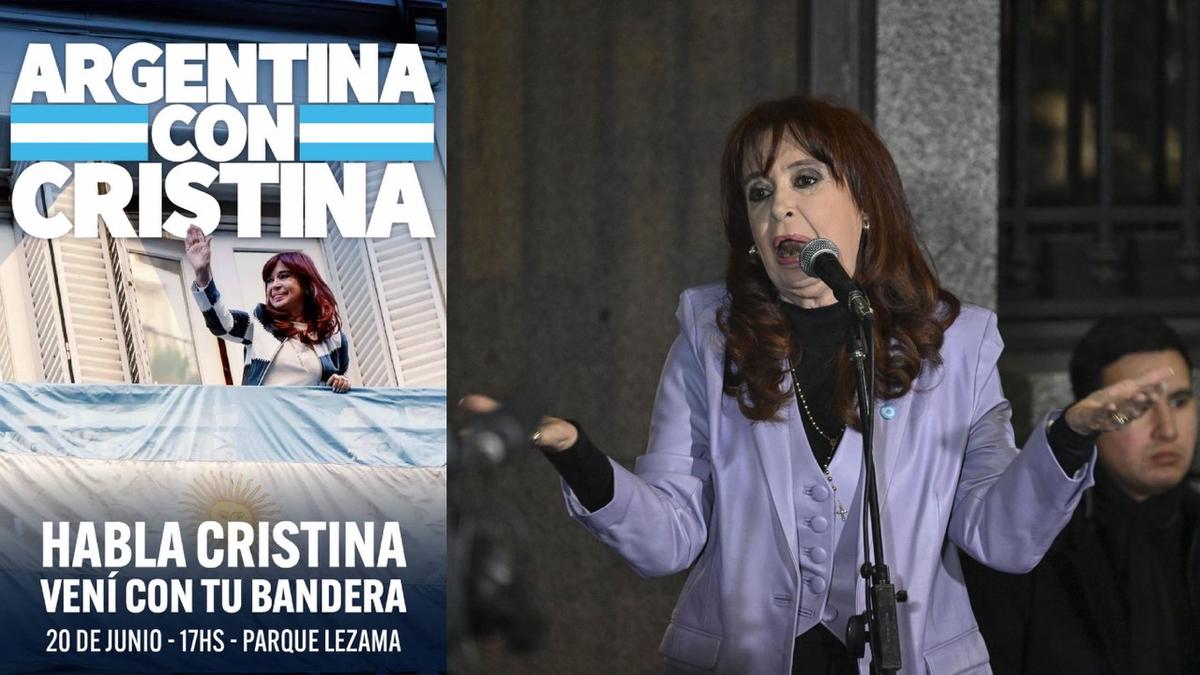 La expresidenta Cristina Fernández de Kirchner confirmó que se dirigirá a sus seguidores este viernes 20 de junio a las 17:00 en el auditorio de Parque Lezama, durante un banderazo en conmemoración del Día de la Bandera. La movilización, que había sido inicialmente planificada para realizarse frente a su domicilio, fue trasladada al parque ubicado en San Telmo.