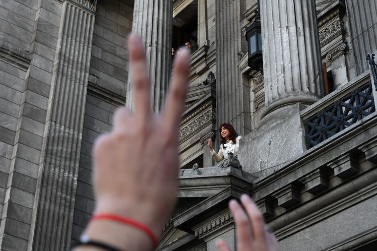 FOTO: Cristina Fernández saluda a los militantes tras su discurso.