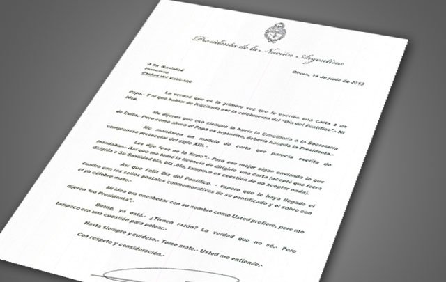 “Espero que le haya llegado el cuadro con los sellos postales conmemorativos de su pontificado y el sobre con el ya célebre mate. Mi idea era encabezar con su nombre como Usted prefiere, pero me dijeron ‘no Presidenta’”, agregó Cristina.