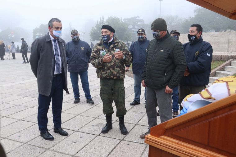 El izamiento estuvo a cargo de autoridades provinciales, municipales y ex combatientes de Malvinas.