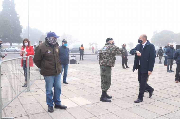 A las 10 se realizó el izamiento del pabellón nacional en el mástil mayor ubicado en el histórico Monumento Nacional emplazado en la costanera central del río Paraná.