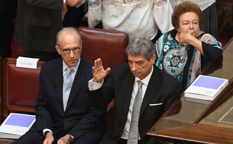 A escasos metros lo escucharon estoicos y con rostros adustos los jueces de la Corte Suprema Horacio Rosatti y Carlos Rosenkrantz.