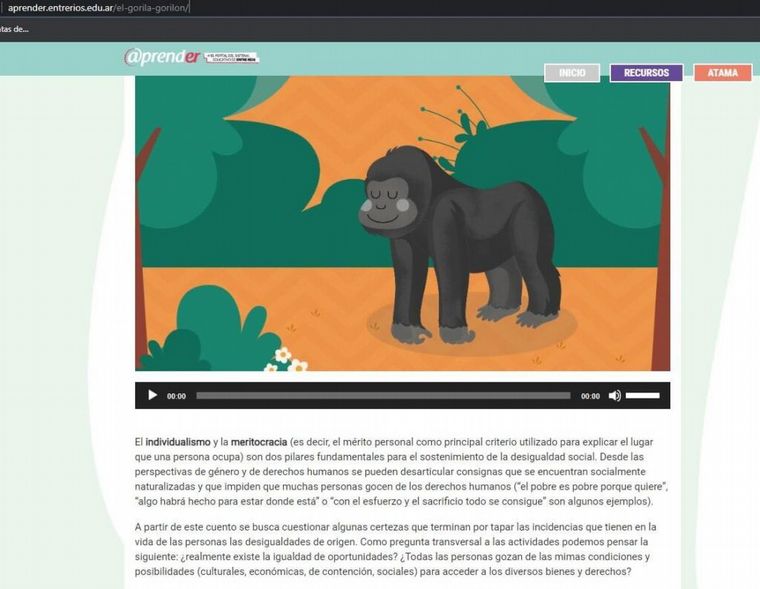 Tras la polémica por "El gorila Gorilón", el Gobierno entrerriano desplazó la jefa de División Producción y Gestión de Contenidos Educativos y Desarrollo Multimedia del Consejo de Educación, Celeste Ramírez, quien estaba al frente del portal Aprender en la provincia litoraleña.