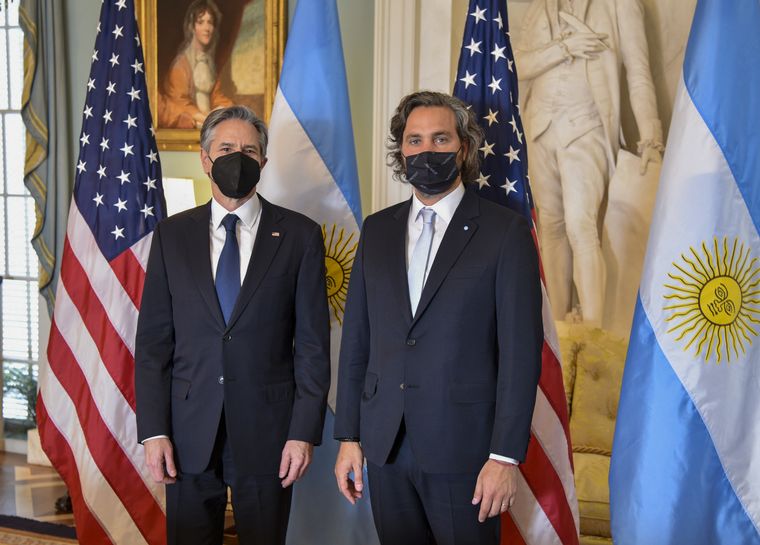 Cafiero se reunió por poco más de una hora con el encargado de las relaciones internacionales de la administración de Joe Biden en el salón Thomas Jefferson del Departamento de Estado, acompañados por el embajador argentino en Estados Unidos, Jorge Argüello, y por el subsecretario de Estado para Asuntos del Hemisferio Occidental, Brian Nichols.