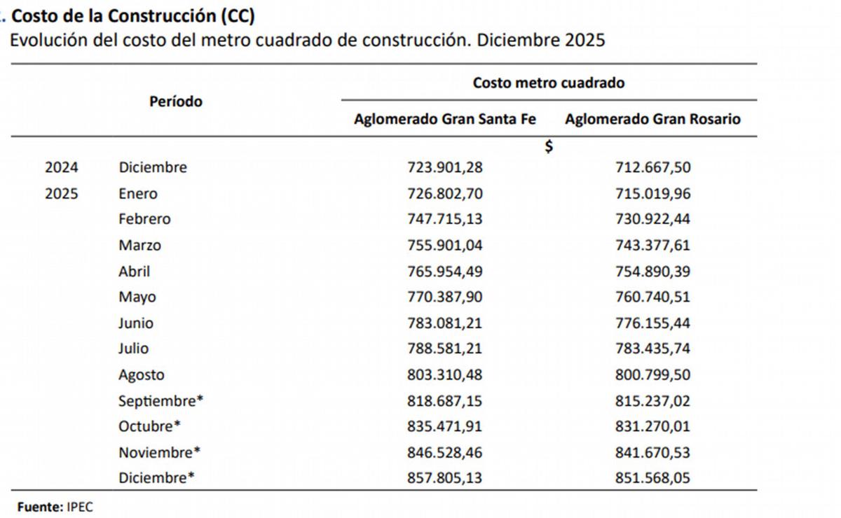 El costo de la construcción en el aglomerado del Gran Rosario volvió a registrar un incremento durante diciembre de 2025 y consolidó un cierre de año en niveles históricamente elevados. Según el último informe del Instituto Provincial de Estadística y Censos (Ipec), el valor del metro cuadrado superó los 850 mil pesos, reflejando una tendencia alcista que se sostuvo a lo largo de todo el año.