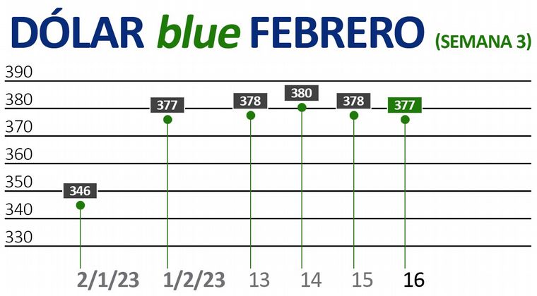 La cotización del dólar blue bajó este jueves por segundo día consecutivo para venderse a $377 en el mercado paralelo.