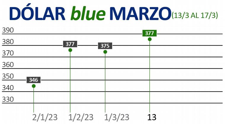 El dólar "blue" subió $4 y se vende a $377 en el mercado paralelo, mientras que las cotizaciones financieras también registran fuertes subas.