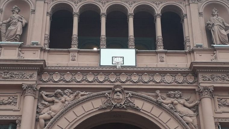 El Gobierno colgó un aro de básquet en Casa Rosada