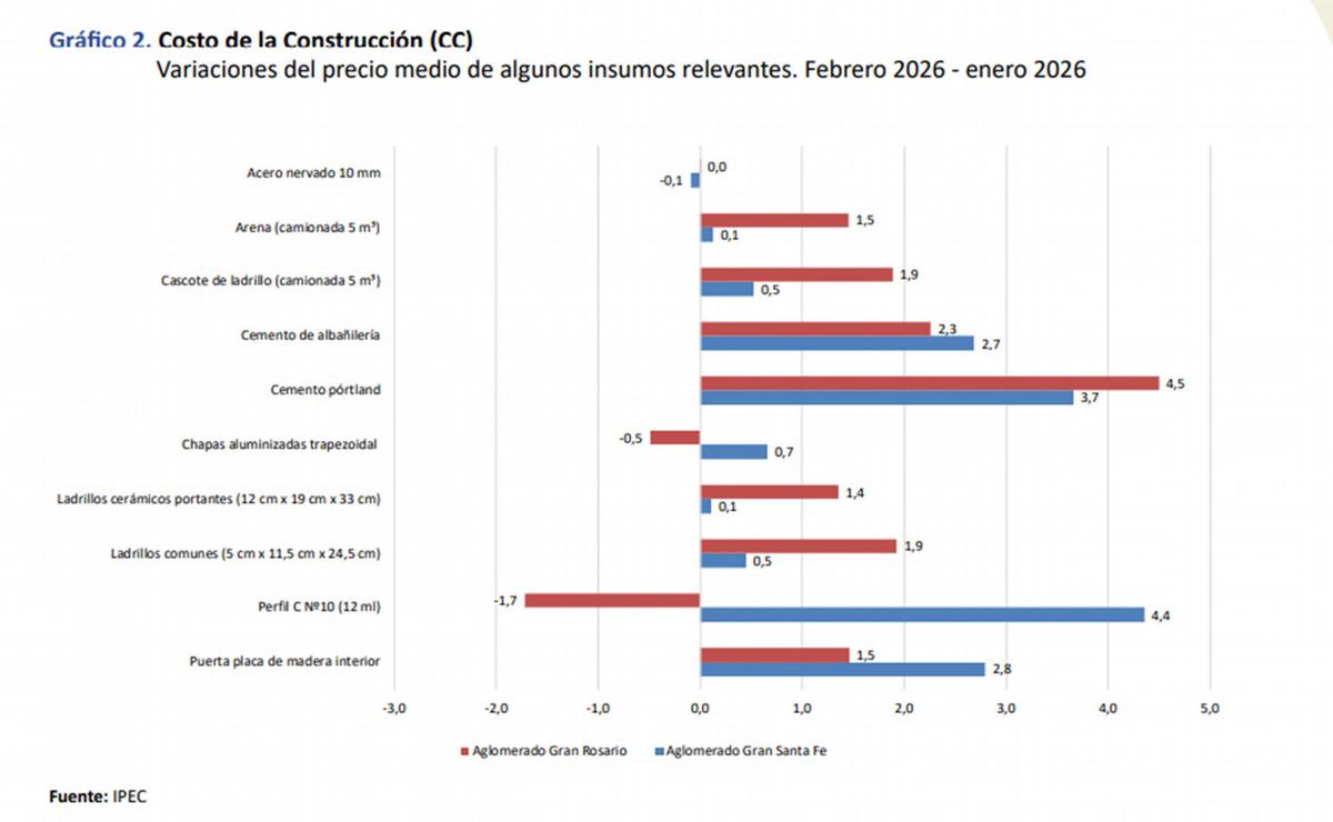 Con este resultado, el indicador de la construcción elaborado por el Ipec acumula un incremento del 3,5% en lo que va de 2026 y una suba interanual del 20,6% respecto de febrero del año pasado.