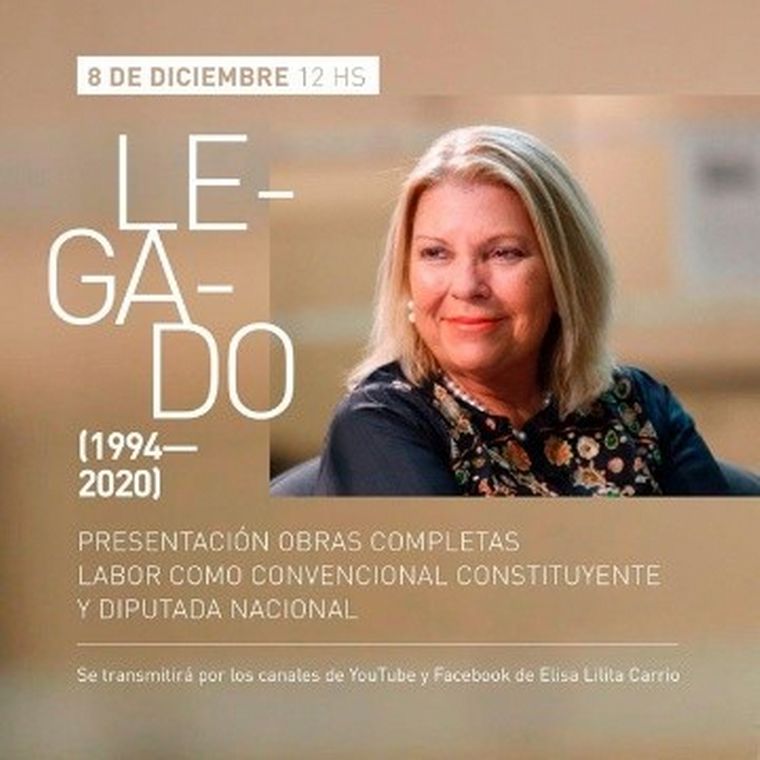 La presentación de "Mi legado político", una compilación del trabajo que realizó la ex diputada desde 1994 hasta 2020, se realiza este martes a las 12 mediante una charla a través de sus redes sociales de YouTube y Facebook.