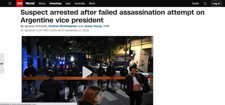 La noticia del intento de asesinato de la vicepresidenta Cristina Fernández de Kirchner, que conmocionó a todo el país, también sacudió las portadas de los principales medios internacionales.