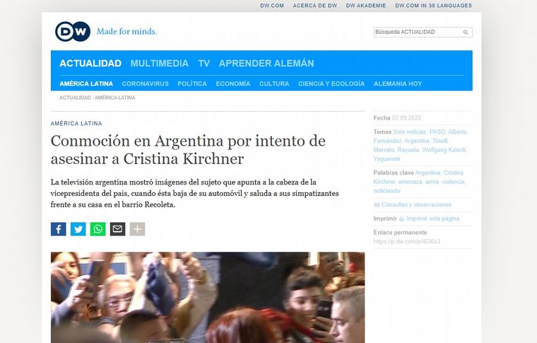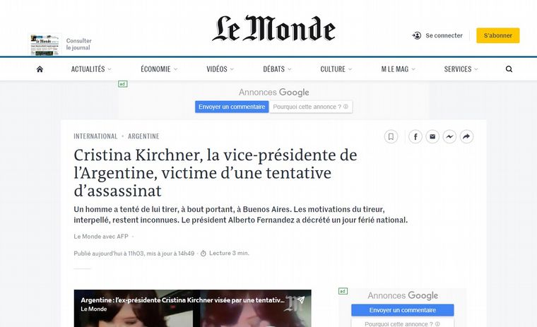 En primera plana: así reaccionó la prensa mundial al atentado contra Cristina