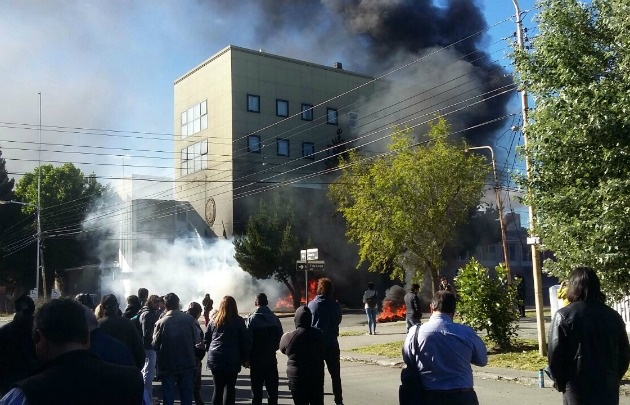 Los incidentes comenzaron alrededor de las siete de la mañana cuando los integrantes de la mesa de Unidad Sindical se hicieron presentes para reclamar el pago de sueldos y aguinaldos.