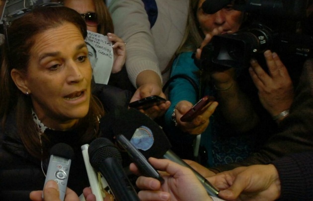 En el interior del Tribunal se encontraba la activista Cecilia Pando, que exhibió carteles reivindicando la represión y buscó protagonizar una protesta al señalar que le juicio era "un circo".