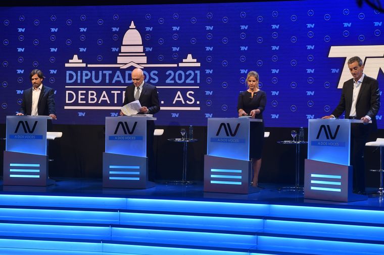 Los candidatos a diputados nacionales por la provincia de Buenos Aires, Diego Santilli (Juntos por el Cambio), Victoria Tolosa Paz (Frente de Todos), José Luis Espert (Avanza Libertad), Nicolás Del Caño (Frente de Izquierda Unidad), Florencio Randazzo (Vamos con Vos) y Cynthia Hotton (Más Valores) protagonizaron este miércoles a la noche el debate de cara a las elecciones del 14 de noviembre.