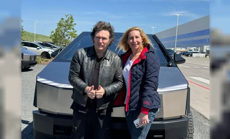 El jefe de Estado manejó un Cybertruck de la compañía y en un video se lo puede ver disfrutar del paseo con su hermana Karina Milei.