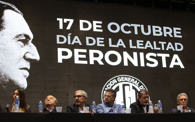 Al acto de la CGT por el 17 de octubre asistieron entre otros dirigentes de peso Carlos Acuña (uno de los integrantes del triunvirato), Andrés Rodríguez (UPCN), José Luis Lingeri (Obras Sanitarias), Julio Piumato (Judiciales), Armando Cavalieri (Comercio) y Gerardo Martínez (UOCRA).