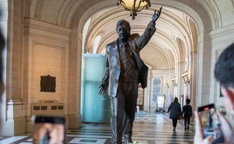 Sobre el destino de la estatua de bronce del fallecido ex mandatario, se confirmó que fue trasladado al municipio de Quilmes, que seguirá los próximos cuatro años gobernado por la camporista Mayra Mendoza.