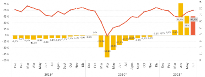 Y en relación a junio de 2019, aumentó 11,3 por ciento, con siete sectores que ya recuperaron los niveles prepandemia y cuatro que no.