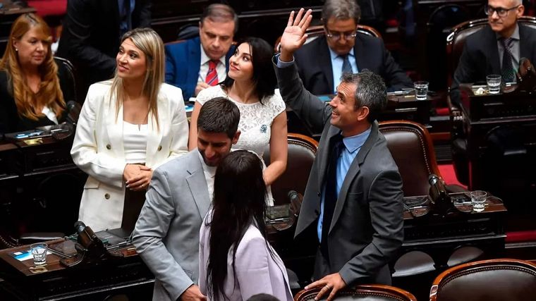 Como contrapartida, el diputado reelecto recibió apoyo y palmeadas de su compañeros de bloque, especialmente de Máximo Kirchner, con quien intercambió comentarios y se lo vio muy cerca.