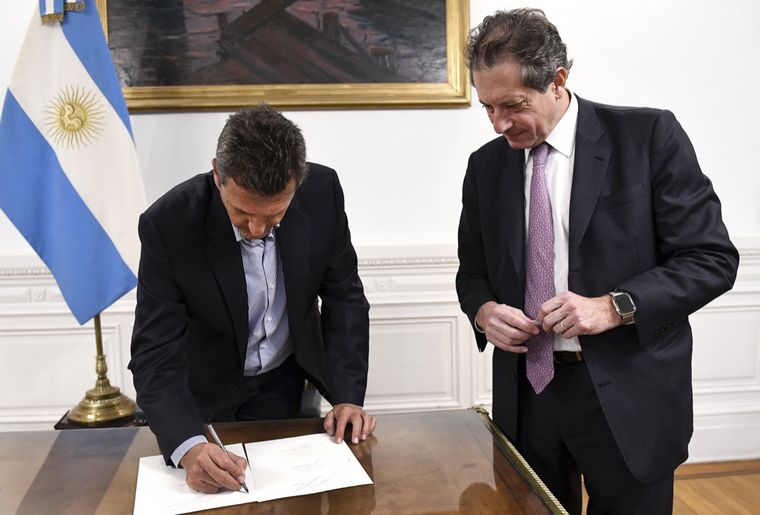 Los presidentes del Banco Central, Miguel Pesce, y de la Cámara de Diputados, Sergio Massa, firmaron este viernes un convenio para la impresión de nuevos billetes nacionales con figuras de personajes relevantes de la historia argentina, que estarán en circulación a partir de junio próximo.