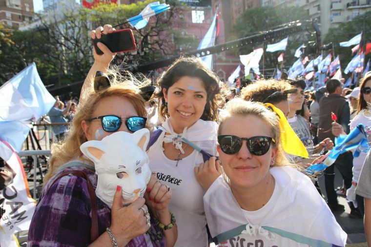 Por su parte, el público, como en las anteriores marchas, agitó banderas argentinas, exhibió carteles con mensajes de respaldo a Macri y cantó "Mauricio la da vuelta" y "Borombombon, brombombom, para Mauricio la reelección".