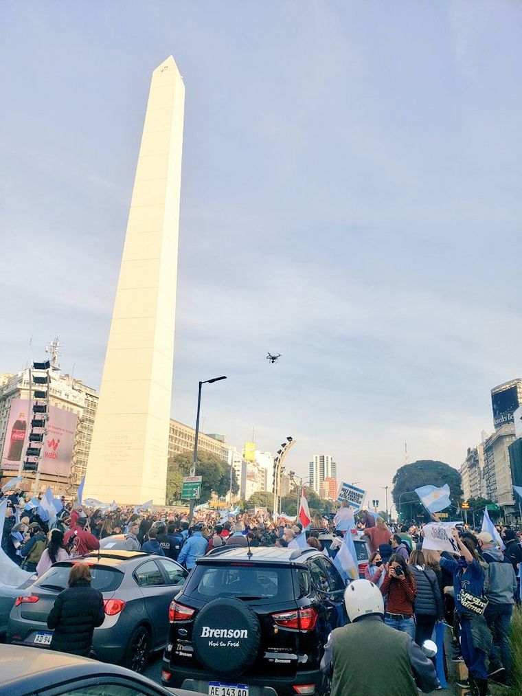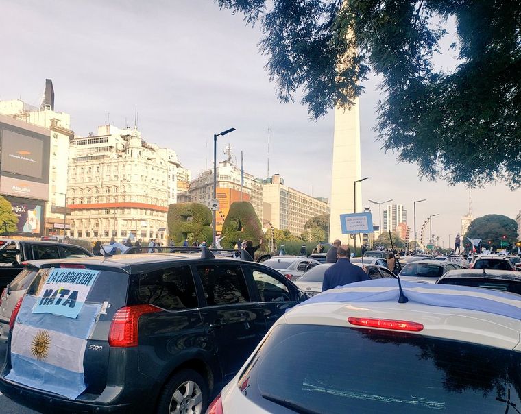 En Buenos Aires, centenares de personas se acercaron al Obelisco a pie con barbijos mientras que otros realizaron una caravana en sus autos particulares.
