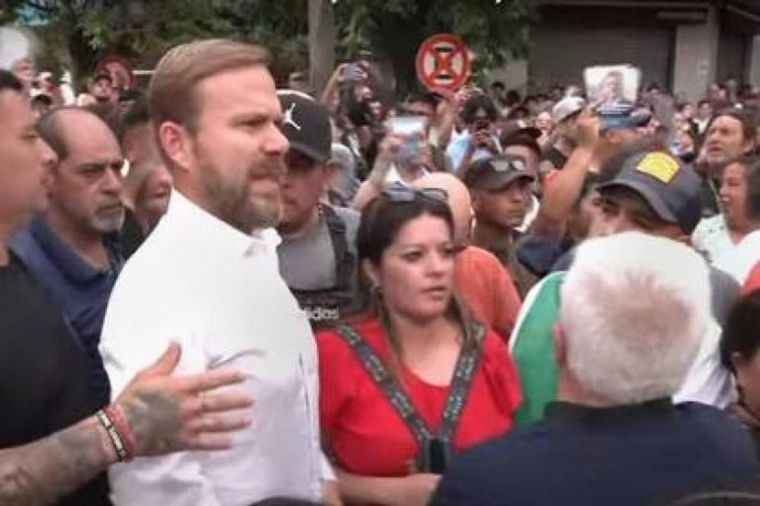 Un grupo de militantes de Sergio Massa (Unión por la Patria) y de Javier Milei (La Libertad Avanza) se cruzaron en la zona céntrica del municipio bonaerense de Ezeiza, a pocos minutos de inicio de un acto que tenía planificado éste lunes el libertario.