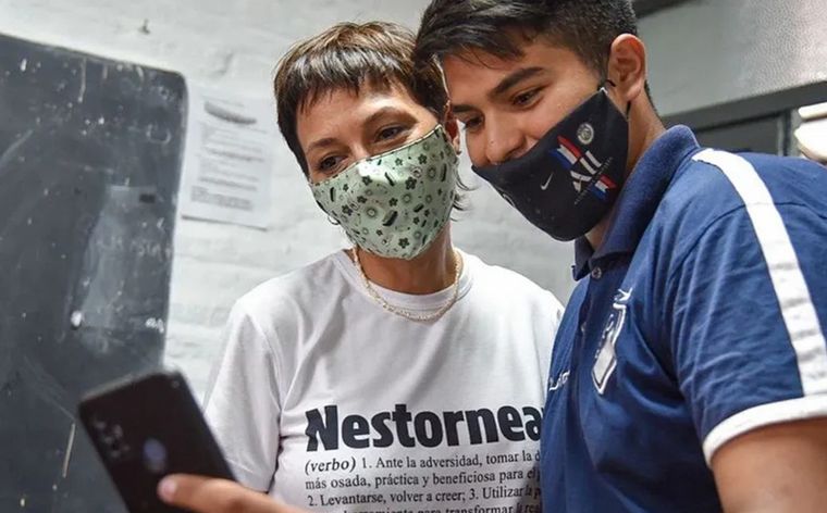 En una visita a una escuela de su municipio, lució una remera con una especial leyenda "Nestornear".
