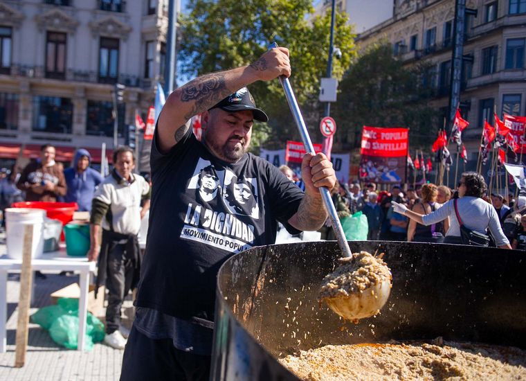 El Bloque Social por el Trabajo -integrado por la Federación Nacional de Trabajadores (FNT) y el Frente Milagro Sala- se reunió en el cruce de las avenidas Belgrano y 9 de julio con ollas populares "contra el ajuste del FMI" y por "una agenda para el trabajo digno".