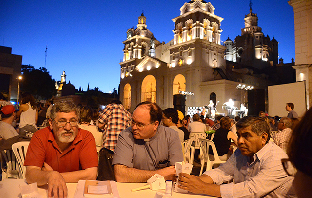 Mesas y sillas dispuestas frente a la Catedral y el Cabildo, ocupadas por familias y autoridades de las diferentes ramas de la actividad fue la imagen que dejó anoche la Plaza San Martín de la ciudad de Córdoba.