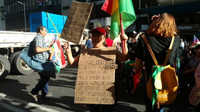 Una manifestante pidió el acompañamiento de los argentinos y dijo a Cadena 3: "Me duele mucho lo que está pasando. A los hermanos argentinos, por favor les ruego que no nos abandonen por favor. Los medios de comunicación boliviana privada se han vendido. En Bolivia, están secuestrando, torturando y matando".