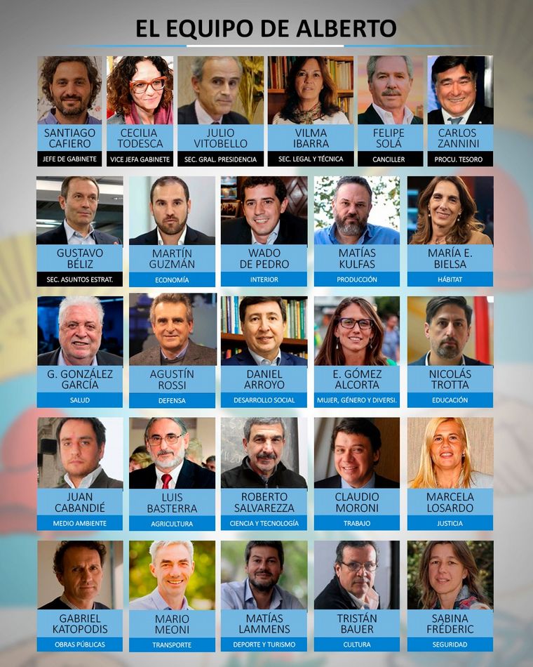 Alberto Fernández presentó este viernes al Gabinete y miembros del equipo que lo acompañarán durante su gestión presidencial los próximos cuatro años.