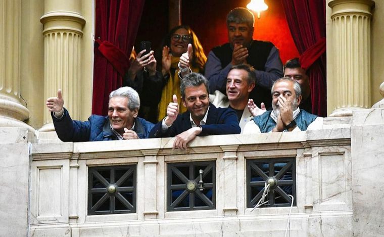 En los palcos, estuvo Massa junto a los líderes de la CGT, Héctor Daer, Pablo Moyano y Carlos Acuña, con quienes se abrazó tras la victoria en el recinto.