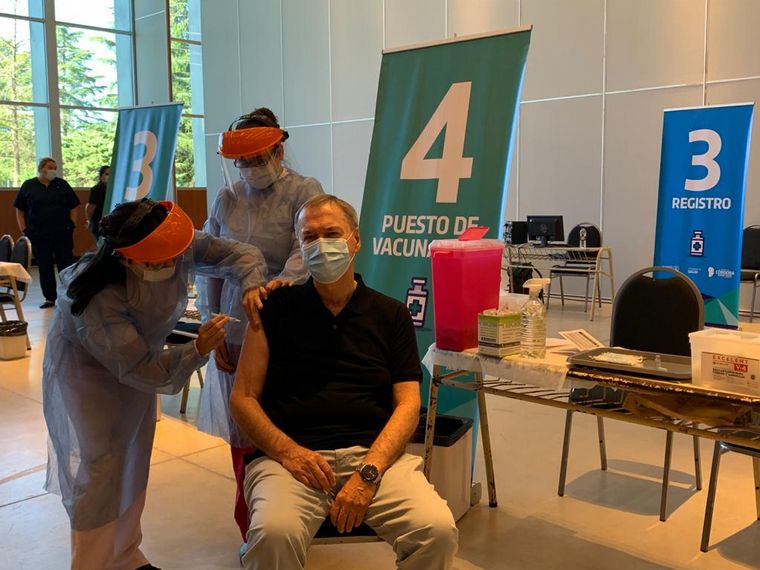 Fue por recomendación del Comité Asesor de Científicos y del Ministerio de Salud. El gobernador se aplicó la primera dosis de la Sputnik V en el Centro de Convenciones Brigadier Juan Bautista Bustos.