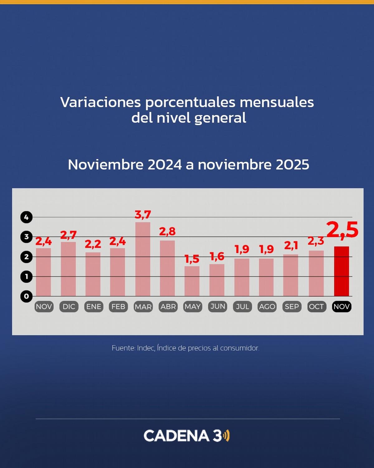 ¿Qué aumentó en noviembre? El Índice de Precios al Consumidor (IPC) aumentó un 2,5% en noviembre respecto de octubre.