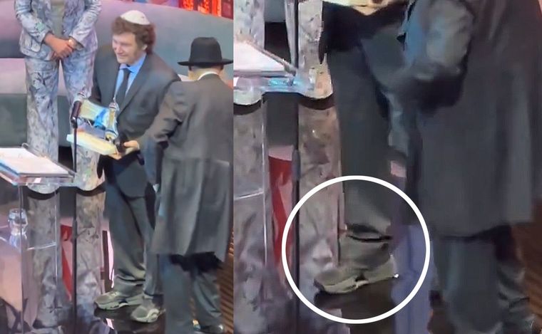 El Presidente fue distinguido en una sinagoga de Florida en el marco de un evento de la comunidad judía ortodoxa Jabad Lubavitch. Un detalle de su vestimenta llamó la atención.