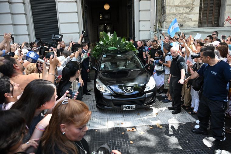 A las 11:40, el coche fúnebre arrancó el recorrido con una corona de flores y envuelto en una nueva ola de aplausos, con algunos de los transeúntes tocando el capot con lágrimas en los ojos.