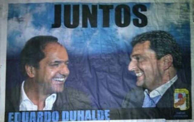 Capital Federal amaneció empapelada hoy con carteles firmados aparentemente por Eduardo Duhalde y el logo del PJ. La idea sería que ambos candidatos vayan juntos en 2015.
