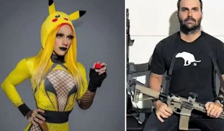 A través de su cuenta de Twitter, el diputado brasileño Eduardo Bolsonaro replicó una publicación para burlarse de Estanislao Fernández por ser drag queen y cosplayer: comparó una imagen suya sosteniendo un arma de guerra con una del joven argentino vestido de Pikachu, uno de los personajes de la serie animada japonesa Pokemón.