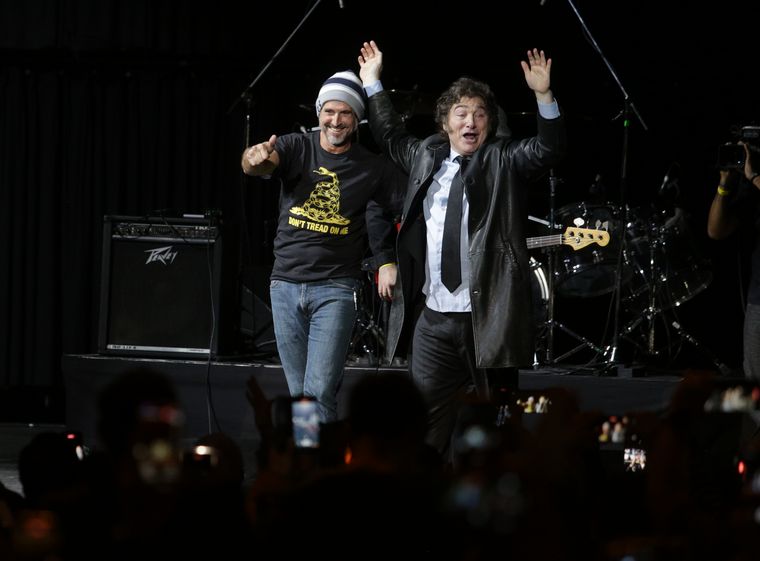 El presidente Javier Milei inició este miércoles a la noche la presentación de su último libro cantando la canción "Panic show", de La Renga, a la que me modificó la letra para señalar: "Toda la casta es de mi apetito".