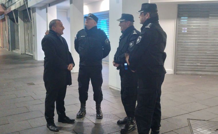 Fabio Acosta, presidente de la Asociación Casco Histórico, mantuvo contacto con agentes policiales en la peatonal Córdoba y renovó el pedido de mayor custodia durante la noche y la madrugada.