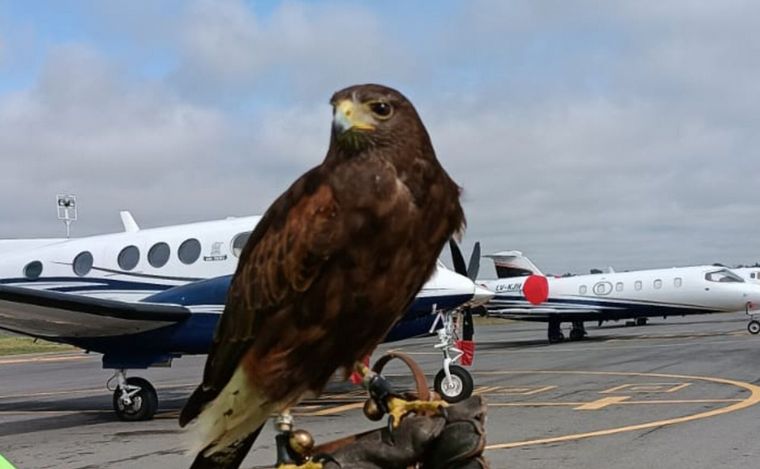 Las dos primeras ya estaban, ahora se sumará un tercero. Se trata de animales entrenados para demarcar el territorio y evitar que otros pájaros perjudiquen el funcionamiento de las pistas de despegue y aterrizaje.