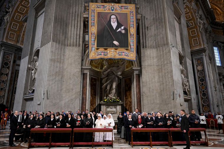 La canonización, que convritió en santa a la laica consagrada nacida en la entonces Tucumán en 1730 y fallecida en 1799, comenzó con una serie de cantos litúrgicos por parte del coro, mientras un retrato de Mama Antula permanecía colgado toda la ceremonia frente al altar central de la Basílica.