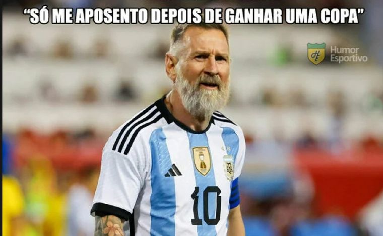 Luego el portal deportivo publicó una selección de memes, empezando por uno en el que se ironiza con la edad de Messi, de 35 años y a quien se retrata en una foto montada con una gran barba blanca, y agrega: "Solo me retiro después de ganar una copa".