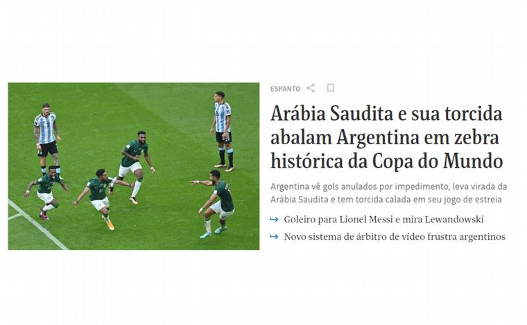 En el lenguaje popular brasileño cuando un resultado es inesperado se lo llama "zebra", título elegido por el diario "Folha de San Pablo" en su portada para ilustrar la derrota "albiceleste" en Qatar.