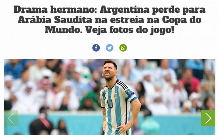 La derrota de Argentina frente a Arabia Saudita por 2-1 en su debut en el Mundial de Qatar dio lugar a ironías y bromas por parte de los medios de comunicación de Brasil.