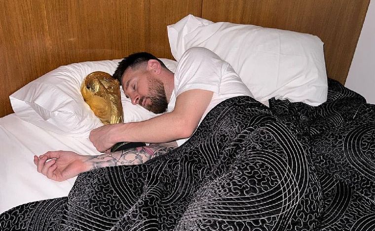 Messi y el mejor despertar: mates en la cama y abrazado a la copa del mundo