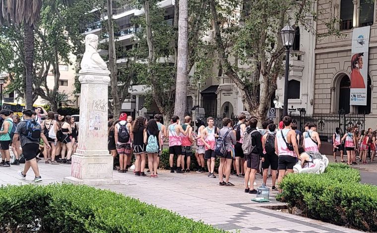 Cientos de alumnos de cuarto año salieron a las calles de Rosario para festejar el cierre de su ciclo lectivo. Con remeras coloridas y algo de ruido, se pasearon por la ciudad y terminarán en el Monumento a la Bandera.