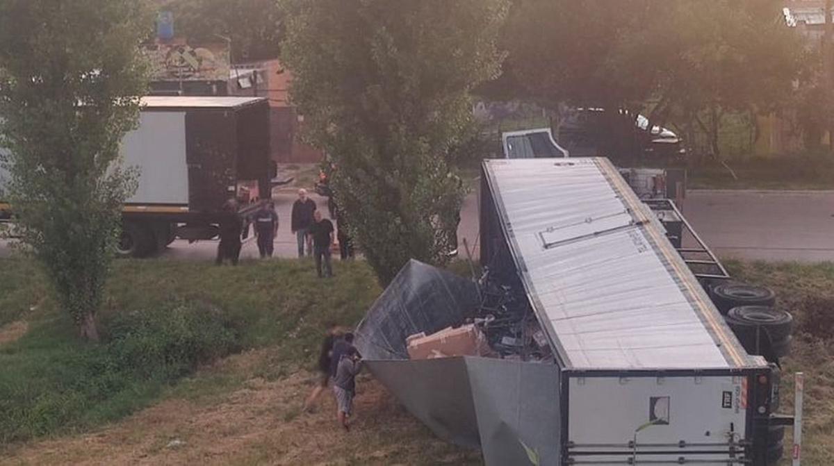 ¿Qué ocurrió? Un camión de gran porte volcó en Juan Pablo II, Rosario, dejando al conductor sin heridas graves.